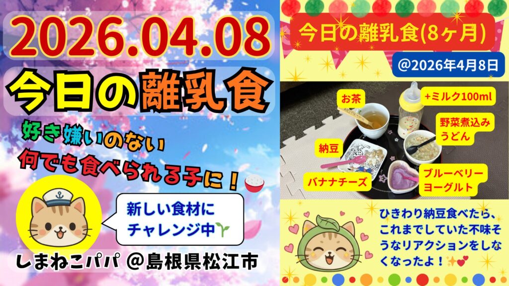 🐾しまねこパパの今日の離乳食🥣好き嫌いのない何でも食べられる子に!✨️2026年4月8日