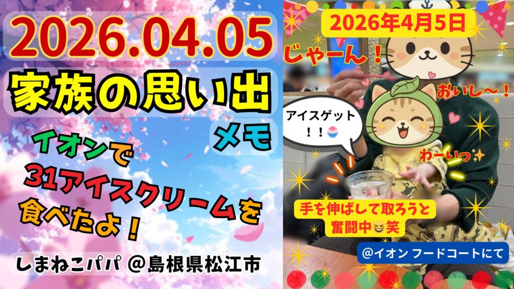 🐾家族の思い出メモ📝イオンでサーティワンアイスクリームを食べたよ!💕2026年4月5日