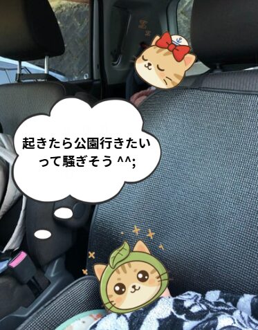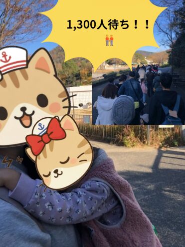 列に並んでいる最中、にゃん子とにゃん太は食後で眠くなったみたいで、娘ちゃんはお母さんの抱っこでぐっすり💤