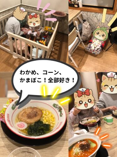 店員さんも親切で、ご飯もおいしく、にゃん子はお子様ラーメンについてきたアンパンマングミですごくテンションが上がっていた!笑