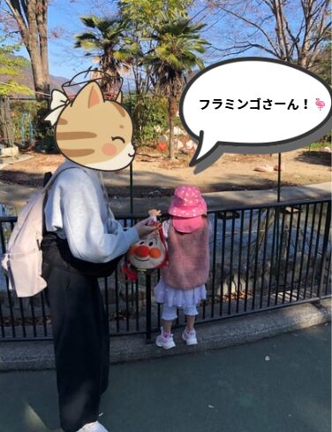 入場してすぐにゃん子の大好きなフラミンゴへ🦩