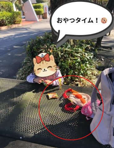 少し歩くとベンチがあったので、家から持ってきた、「きのこの山」と「たけのこの里」を自分のカバンから取り出して少し休憩🍄