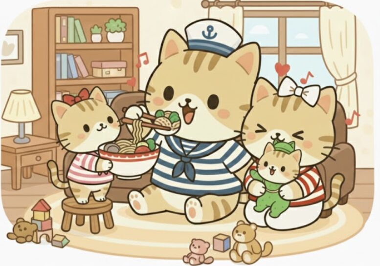今晩は早速、にゃん子が作ってくれたラーメンで夜ご飯!🍜
