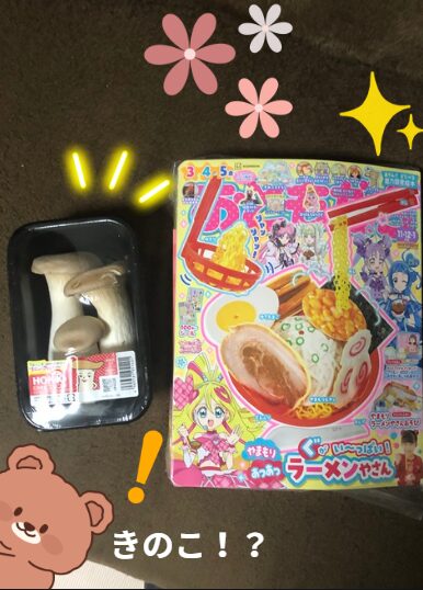 ついでに一緒に買ってきたキノコも見せてくれて、「見てほらこのキノコかわいいでしょ!?」と、本に釣られてなのか、エリンギさんも可愛いと言うことに🍄