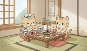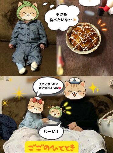お好み焼きを食べているにゃん子を、羨ましそうに見ていたにゃん太と一緒におしゃべり💬