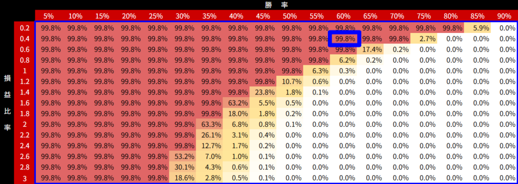 ▼進行中のトレードの破産確率(青枠が現状の確率)