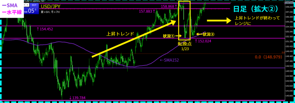 - 【今】158.868を上抜け&「転換点(大陰線)」がでていない場合
