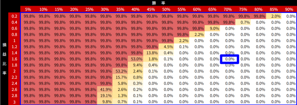 ▼進行中のトレードの破産確率(青枠が現状の確率)