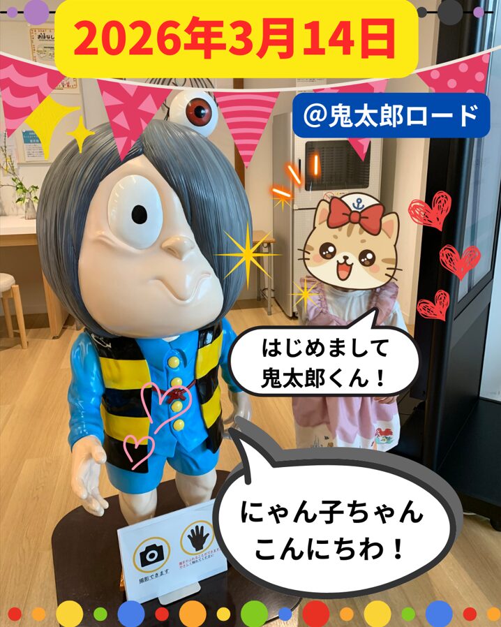 お父さんとにゃん太はお家でのんびり過ごしていたけど、にゃん子はおばあちゃんと一緒に境港の鬼太郎ロードにも行ったみたいで充実した休日を満喫👻