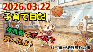 午前中、そんなこんなで少しのんびりした後は、軽くご飯を食べて、お昼からはお父さんにゃん子で体育館へ🏀