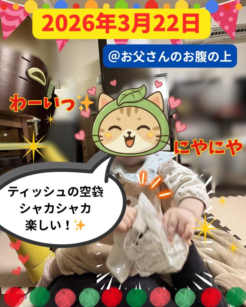 帰ってからは、お母さんにゃん太と少しのんびり時間を過ごして、最近、保育所でもらって帰ったこれまでににゃん子が保育所で作った工作の作品集を一緒に見て、にゃん子から、「これはどういう作品なのか」とか説明を受けながら、にゃん子の成長を工作作品を通して感じるという時間を過ごしました!🎨