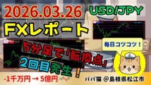 - 前回の失敗を活かし、5分足での「転換点」発生時に買い増しできた!👍️