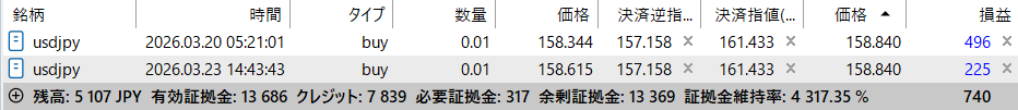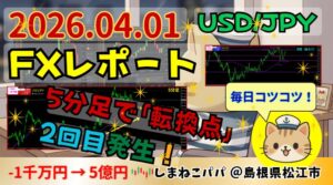 - 前回の失敗を活かし、5分足での「転換点」発生時に買い増しできた!👍️
