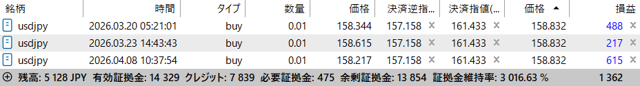 - 今ロットが0.01ではなく、0.03にしているので、この状態で破産の確率を引いてしまわないようにそこだけが今は神頼みの状況