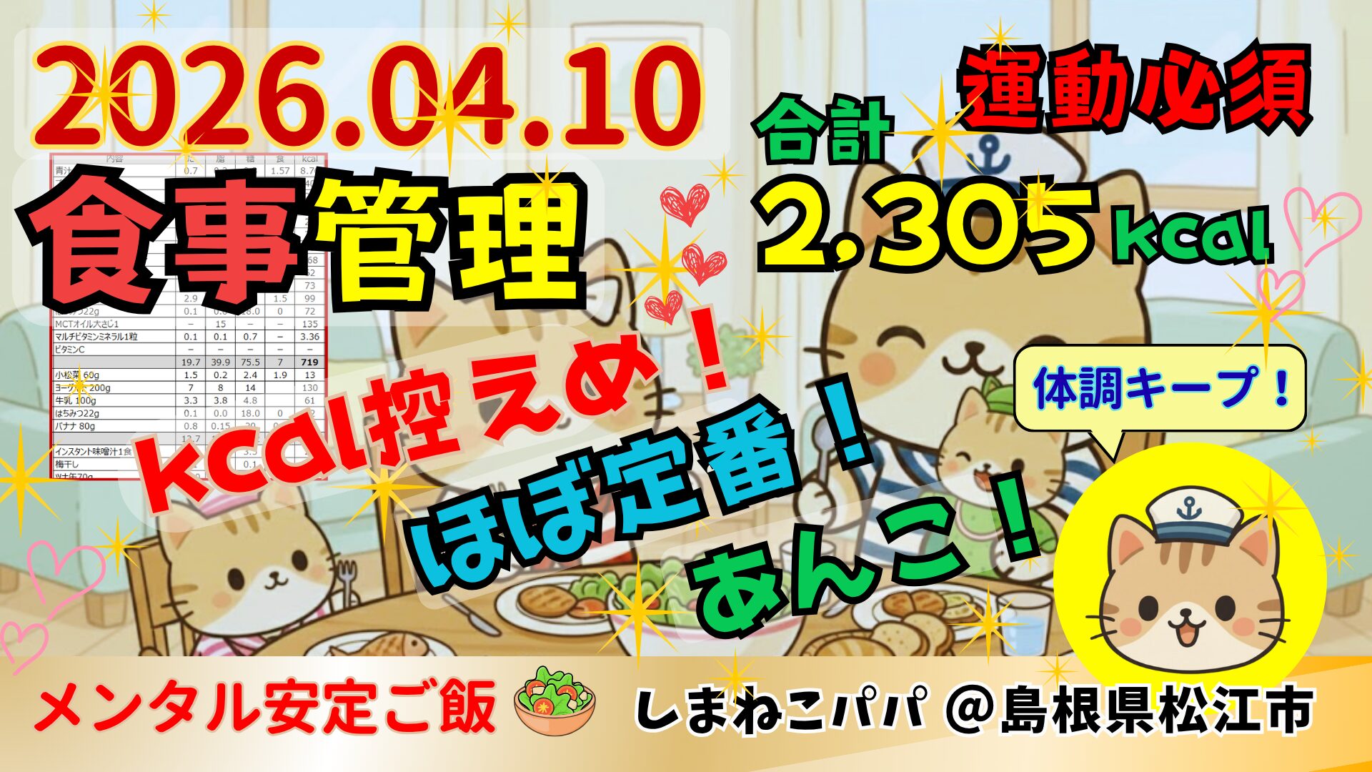 今日はトレーニングの休養日だったのでまあ悪くないかなと思いつつ、極端に特定の日だけ少なくなるのも良くないなと思うので、明日からはまた2,700kcalを標準に考えてしっかり栄養とっていこう!👍️