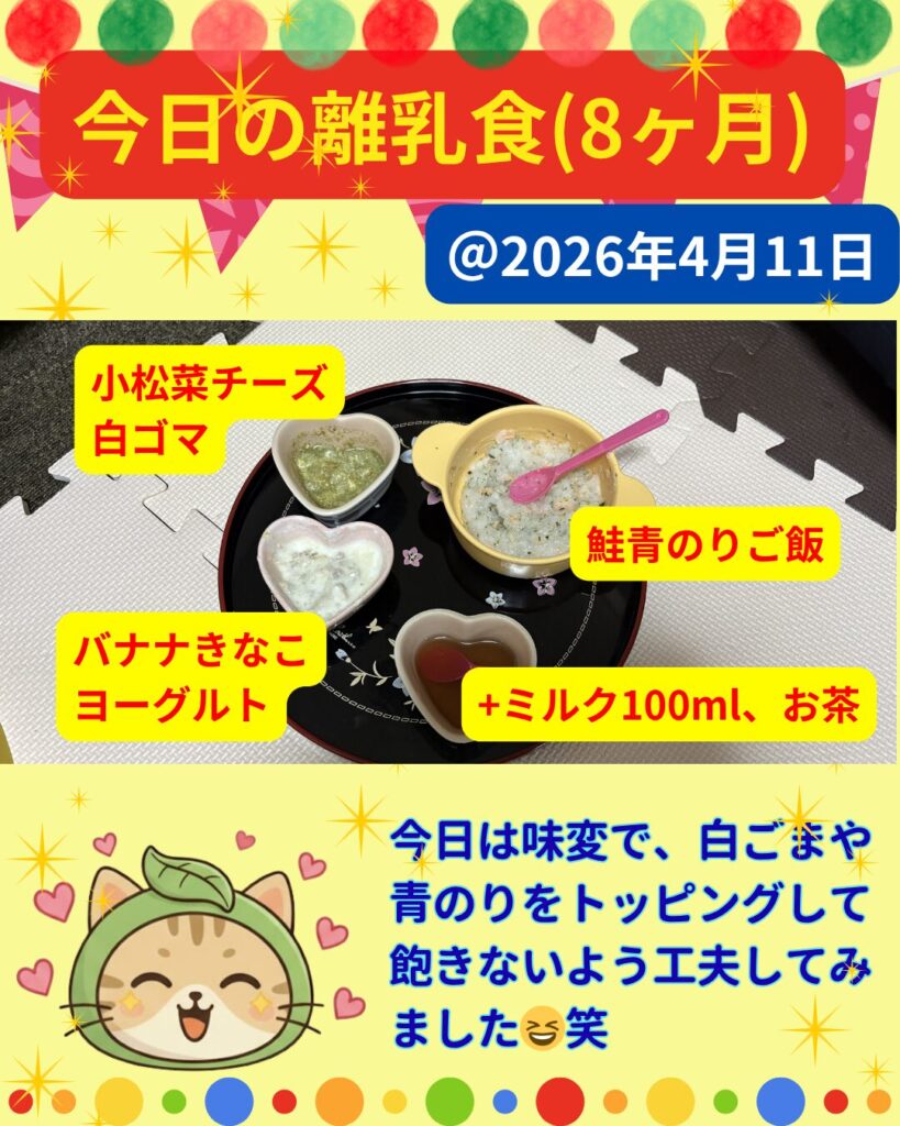 🐾しまねこパパの今日の離乳食🥣好き嫌いのない何でも食べられる子に!✨️2026年4月11日
