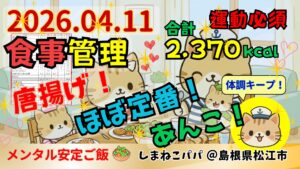 - PFCバランス=27.3%:35.1%:37.6%(脂質少し多い)