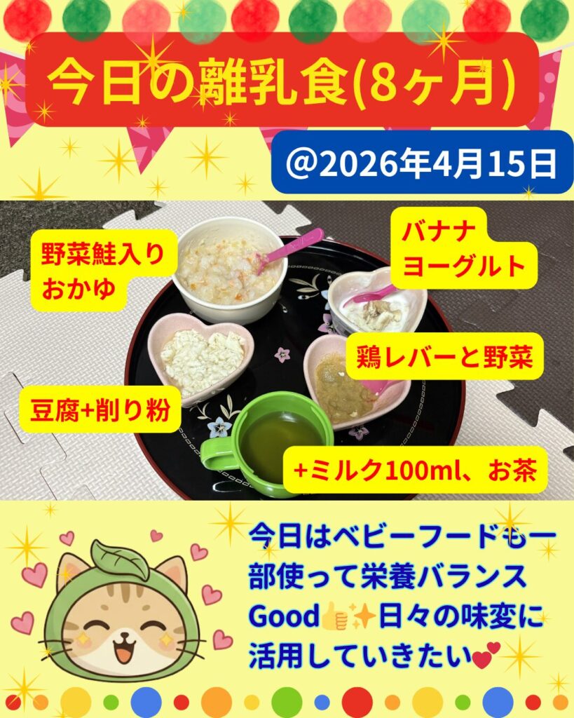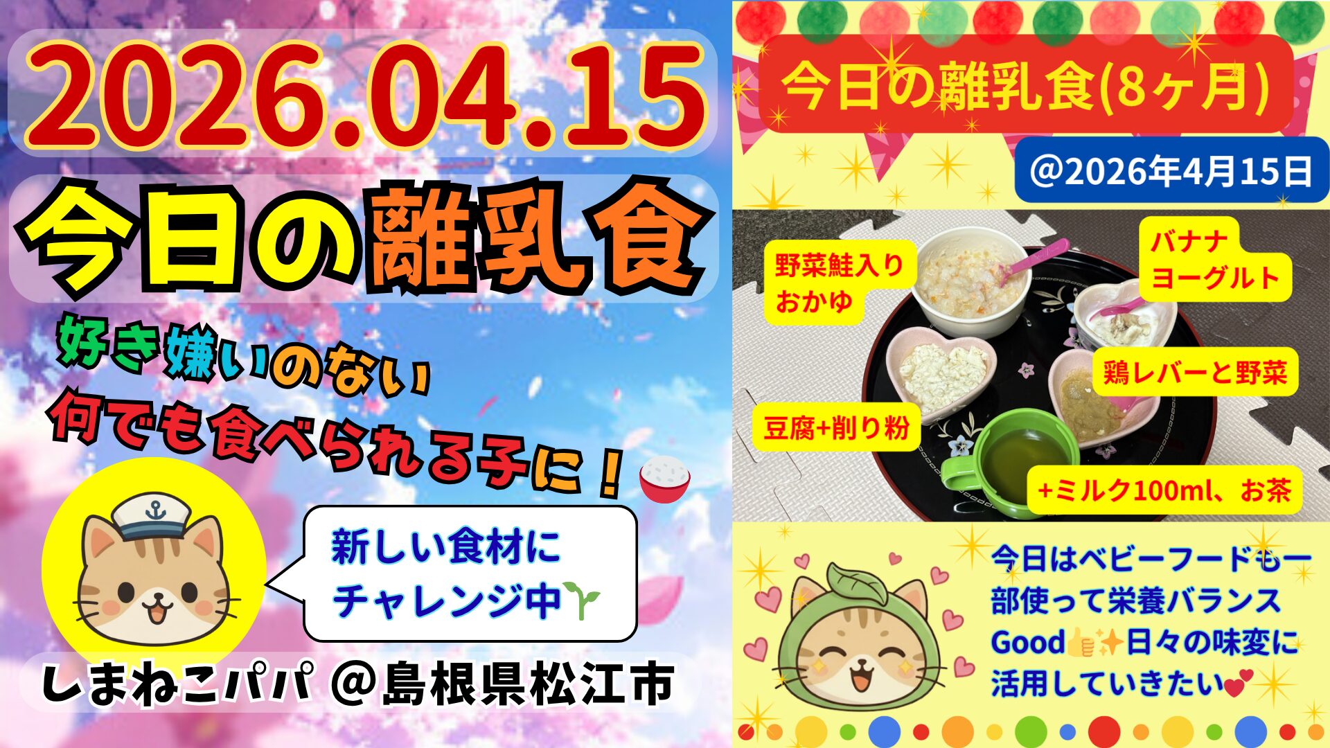 🐾しまねこパパの今日の離乳食🥣好き嫌いのない何でも食べられる子に!✨️2026年4月15日