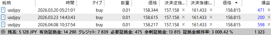- TP:152.024までの直近の抵抗線で細かくTPする(157.883)