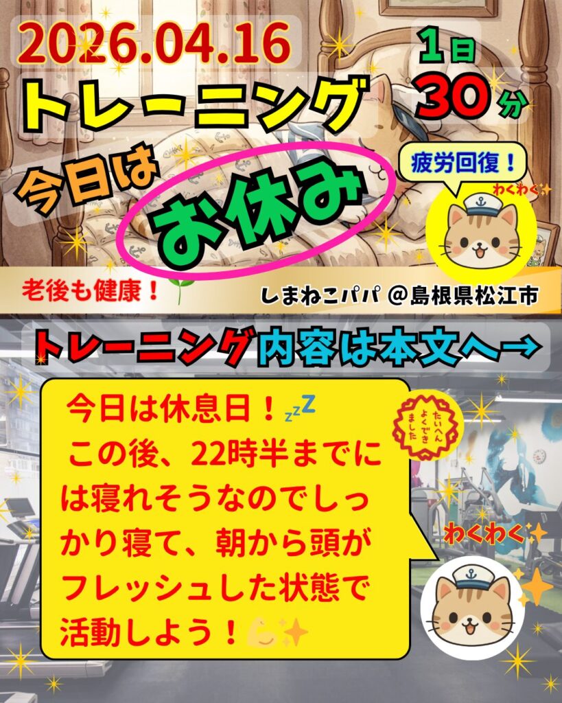 今日はトレーニングの休息日!💤