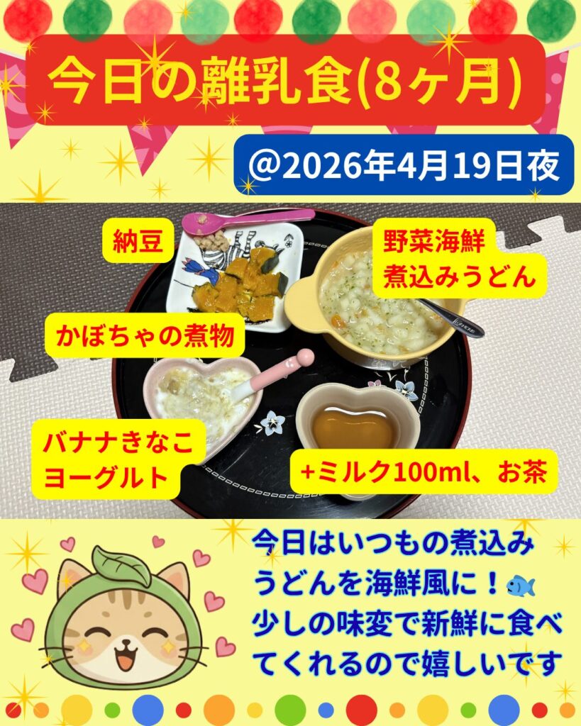 今日から三回食が始まって、こうやってSNSに写真をアップする用に写真を撮っていたことで、妻と前回との食事をしたの共有がしやすくなっていたので、今後、妻にも離乳食の際に何を食べたか写真を撮ってもらって、同じようなメニューが続かないように夫婦で工夫しながら、離乳食の時期を過ごしたいと思います✨️