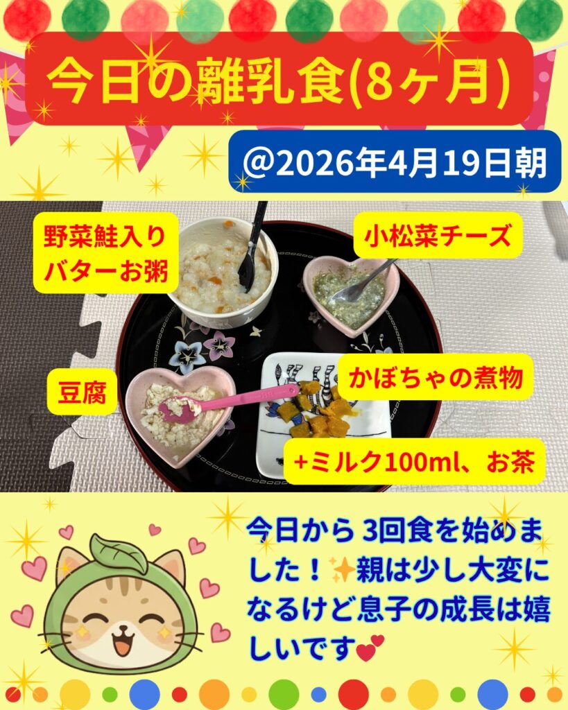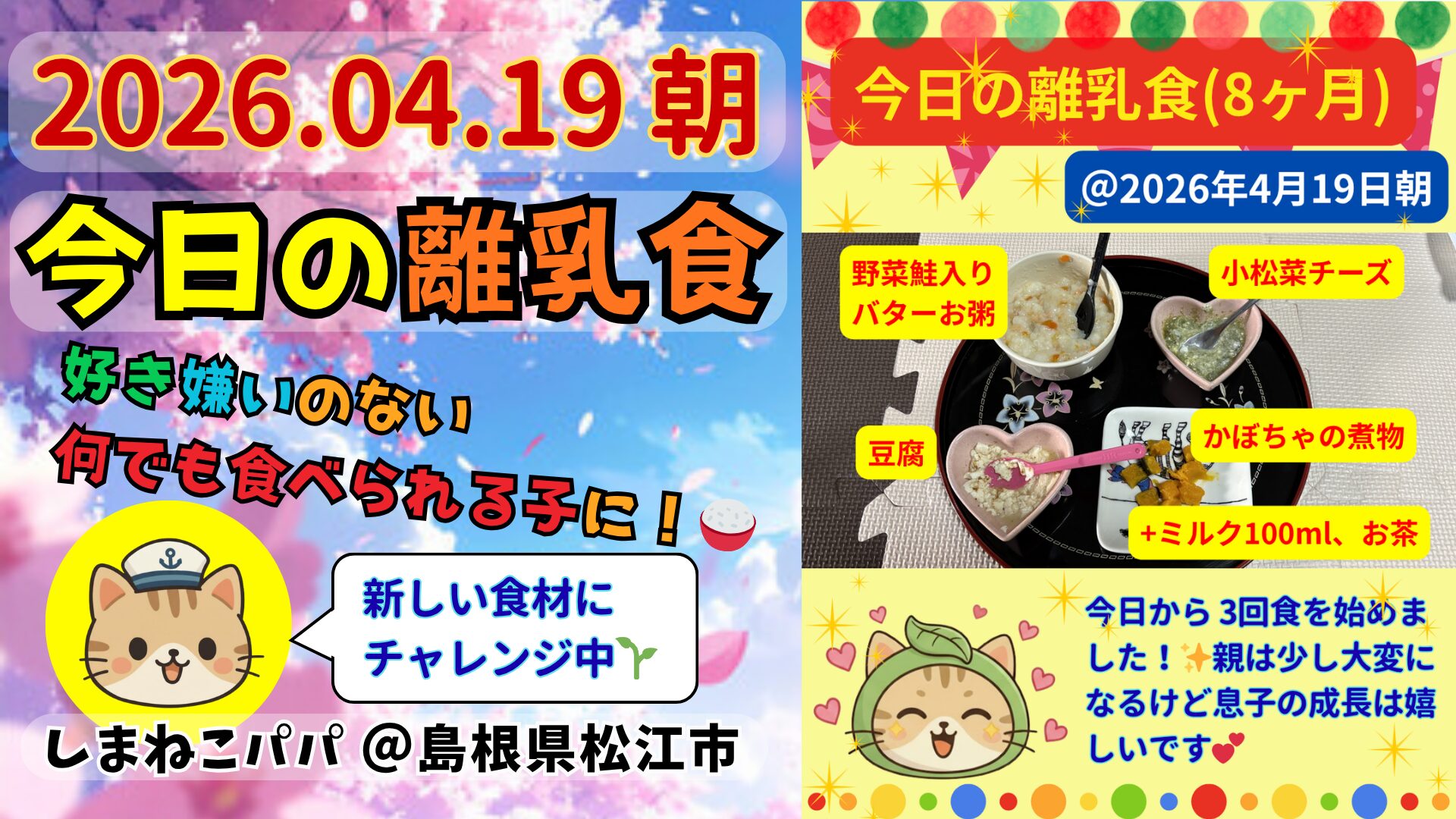 🐾しまねこパパの今日の離乳食🥣好き嫌いのない何でも食べられる子に!✨️2026年4月19日朝