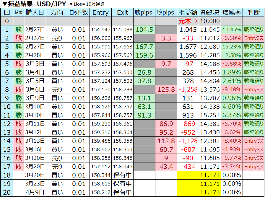 このレポートには、ボクの日々のトレード結果をすべて記録しているよ!ぜひ、みんなのトレードの参考にしてみてね!💡