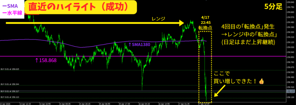 ▼直近のハイライト 4/17 21:45の”4”回目の「転換点」発生時の対応