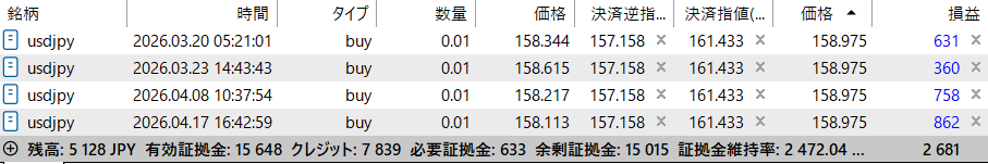 - 今ロットが0.01ではなく、0.04にしているので、この状態で破産の確率を引いてしまわないようにそこだけが今は神頼みの状況
