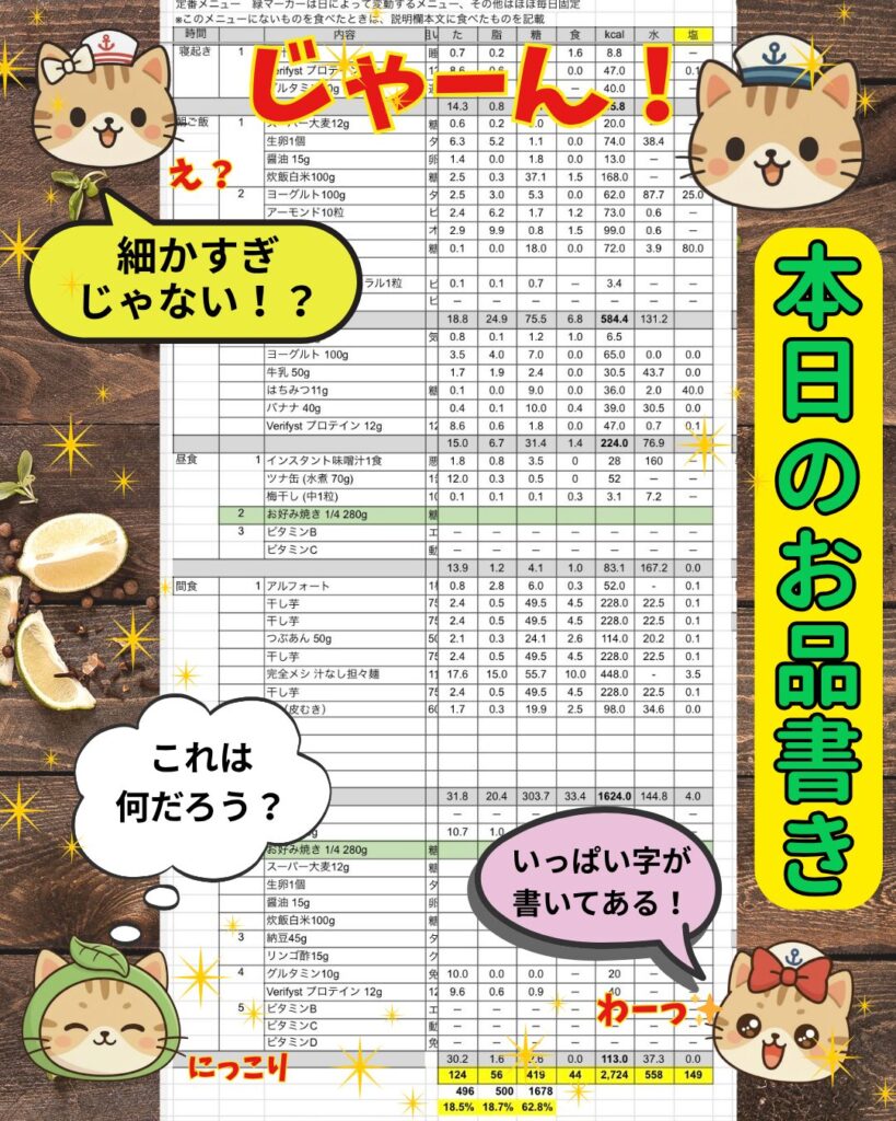 たんぱく質も糖質がいっぱい取れた分、少なくなっていたので、体重×2倍のグラム量は取ることを意識したい👍️