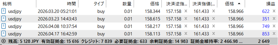 この1ヶ月ぐらいでこのシーンを何回見たんだろうと思うけれど、転換点が5分足レベルで発生すると、買い増しができるという点で手法が機能した時の効果は大きいので、こういった相場状況にも慣れて辛抱強くトレードができるように、精神面を鍛えていきたいと思います💪