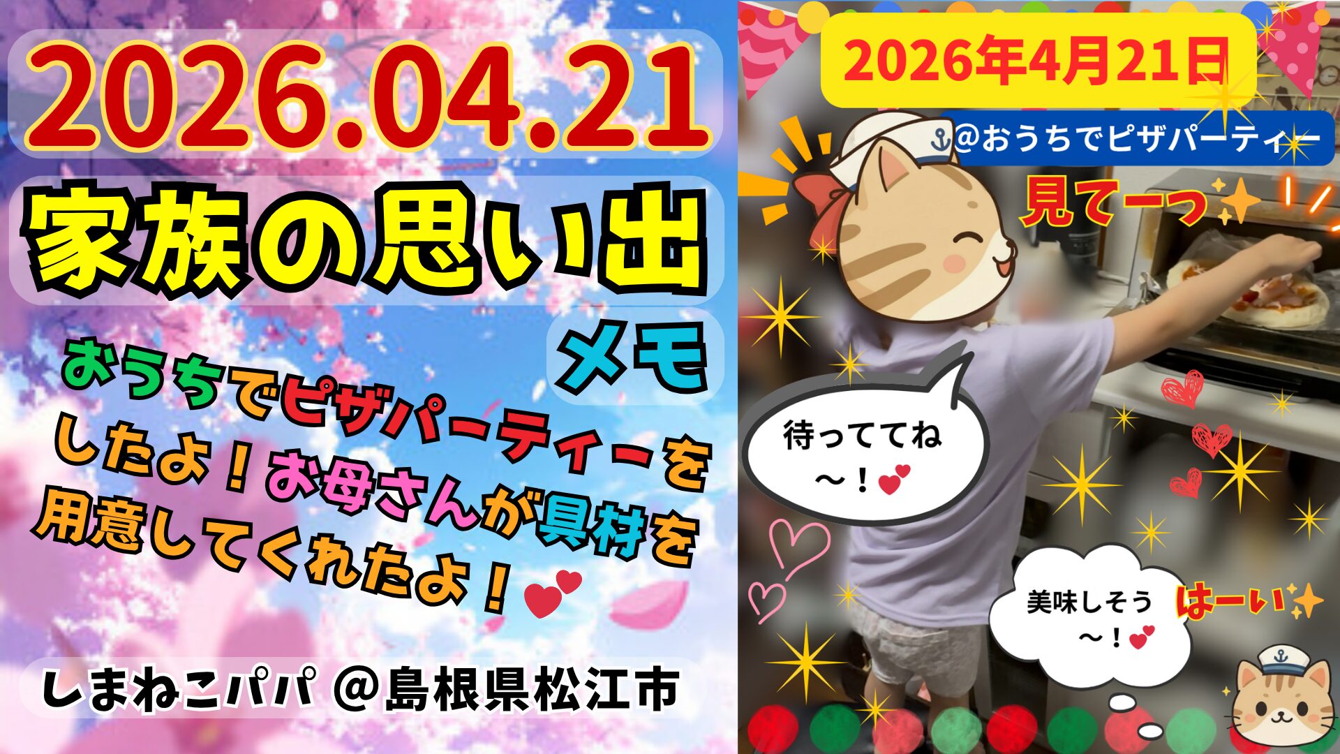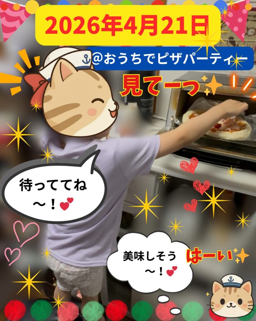今日は夜ご飯にお母さんが具材を準備してくれて、娘と一緒にみんなでピザパーティーをしてピザを食べました!🍕