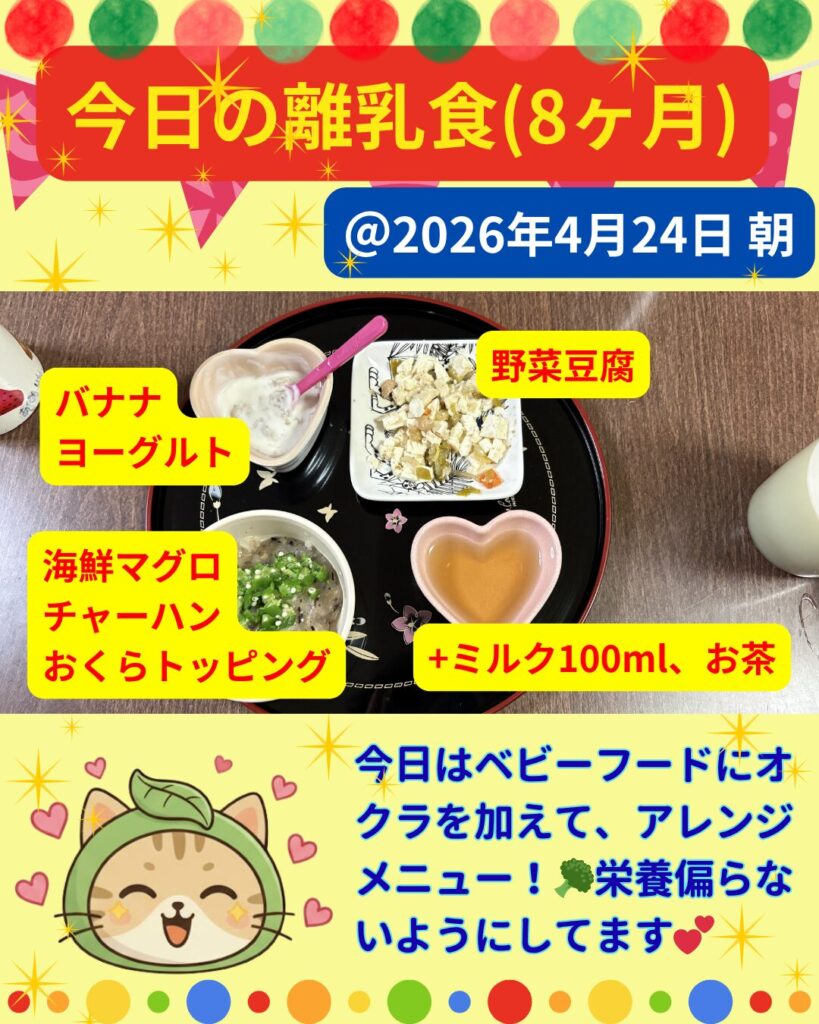 今日はベビーフードにオクラを加えて、ベビーフードのアレンジメニュー!🌱