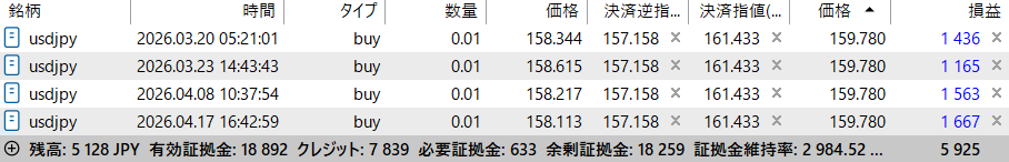 - 今ロットが0.01ではなく、0.04にしているので、この状態で破産の確率を引いてしまわないようにそこだけが今は神頼みの状況