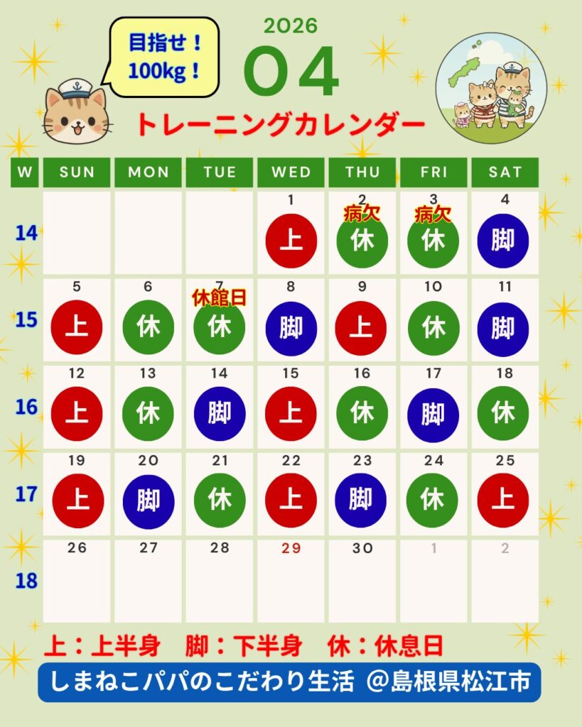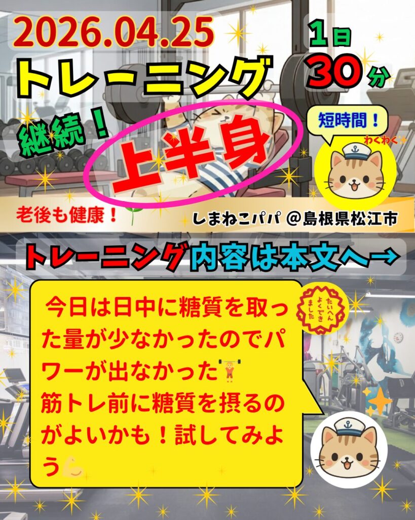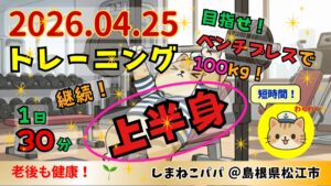 🐾しまねこパパのトレーニング記録|上半身📝目指せ!ベンチプレス100kg🏋️2026年4月25日