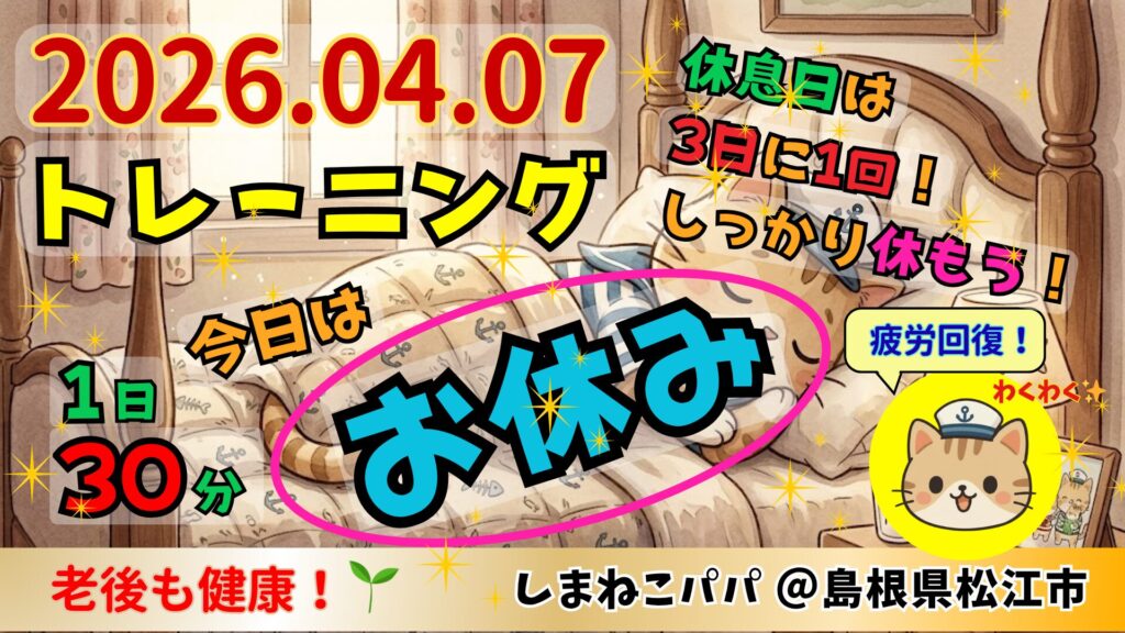 🐾しまねこパパのトレーニング記録📝|今日は休息日🛌2026年4月7日
